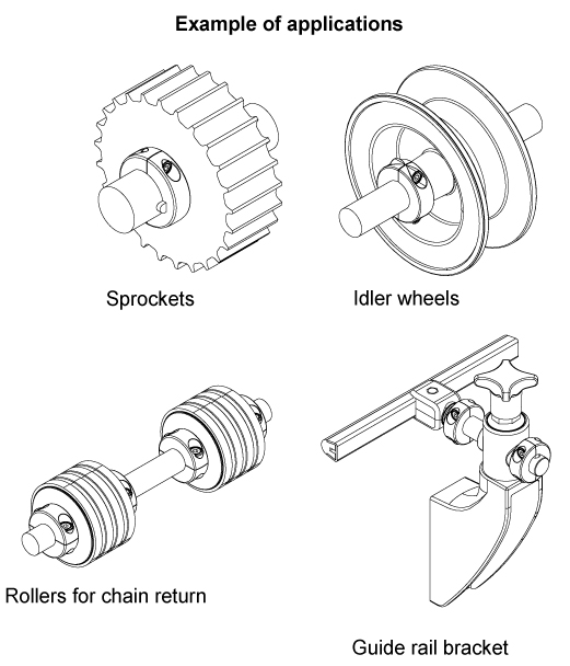 Deelbare Asklem voorzien van ronde boring leverbaar met en zonder spiebaan in PA+GF zwart voorzien van RVS 304 bevestigingsmateriaal