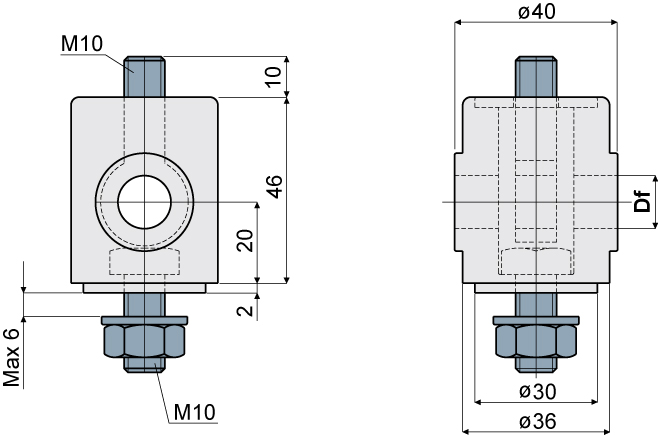 PA kop ø40 x 46 mm met RVS 304 bevestigingsmaterialen, leverbaar voor as (Df)