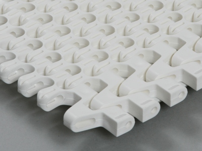 Open radiusband 52% met aan beide zijden zwaardere buitenschakels.Open radiusband 52% met aan beide zijden zwaardere buitenschakels. Naast de standaard accessoires is het mogelijk om de band met stalen verstevigingen of aangegoten sideguards te leveren