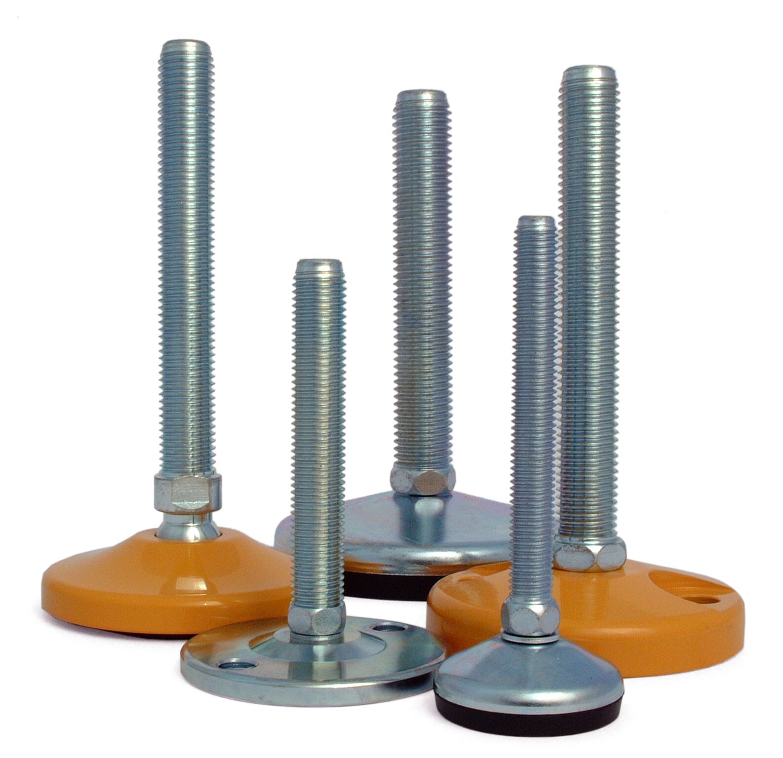 Een stelvoet is een technisch industrieel product bestaande uit een basis, de “plaat”, en een spindel, de “schroef”, en wordt gebruikt voor het dragen en/of egaliseren van machines en installaties van verschillende aard. Onze machine- of stelvoeten zijn leverbaar in verschillende materialen en ontwerpen. De basis platen zijn verkrijgbaar in roestvrijstaal, staal en kunststof met een diameter van ø20 mm tot ø180 mm.