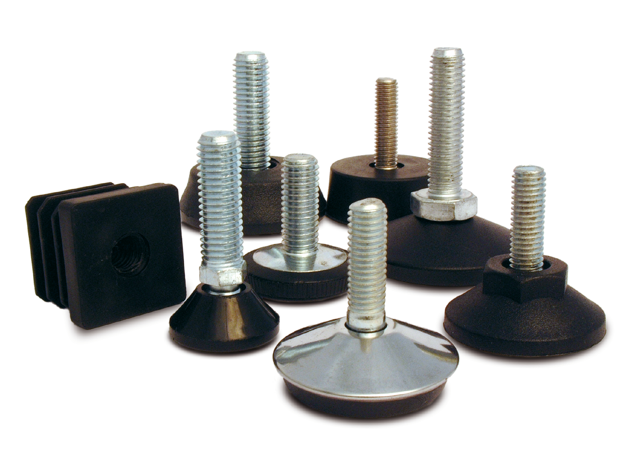 Deze verstelbare voeten en rubberen voetjes zijn ideale producten voor lichte toepassingen en bij gebruik in grote hoeveelheden. Meubelindustrie zoals kantoren of interieurs, de zogenaamde witte industrie zoals huishoudelijke elektrische apparaten, elektrische kasten en lichte steigers zijn de meest voorkomende toepassingen voor deze machinevoeten.