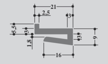 Klemprofiel 21 x 9 mm met opstaande rand 2,5 mm