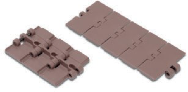 Kunststof kettingen in rechte uitvoering. Afhankelijk van de toepassing in diverse materialen leverbaar zoals, diverse soorten POM, PP, PBT, PL en PA. Tevens pennen in verschillende materiaalkwaliteiten te verkrijgen. Leverbaar in single hinge, single reinforced hinge en double hinge. Breedtes variërend van 63,5 tot 304,8 mm